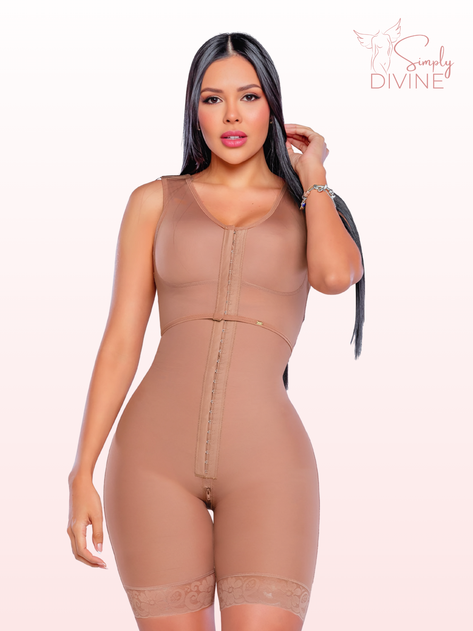 SD-2025 Mid-Thigh Invisible Girdle with Bra and Front Clasp
